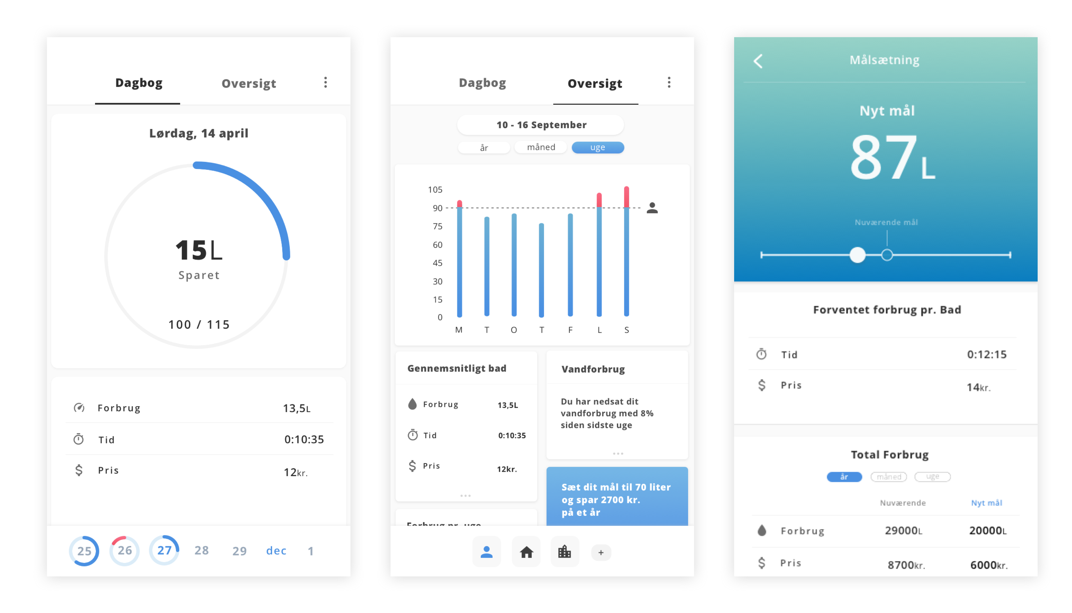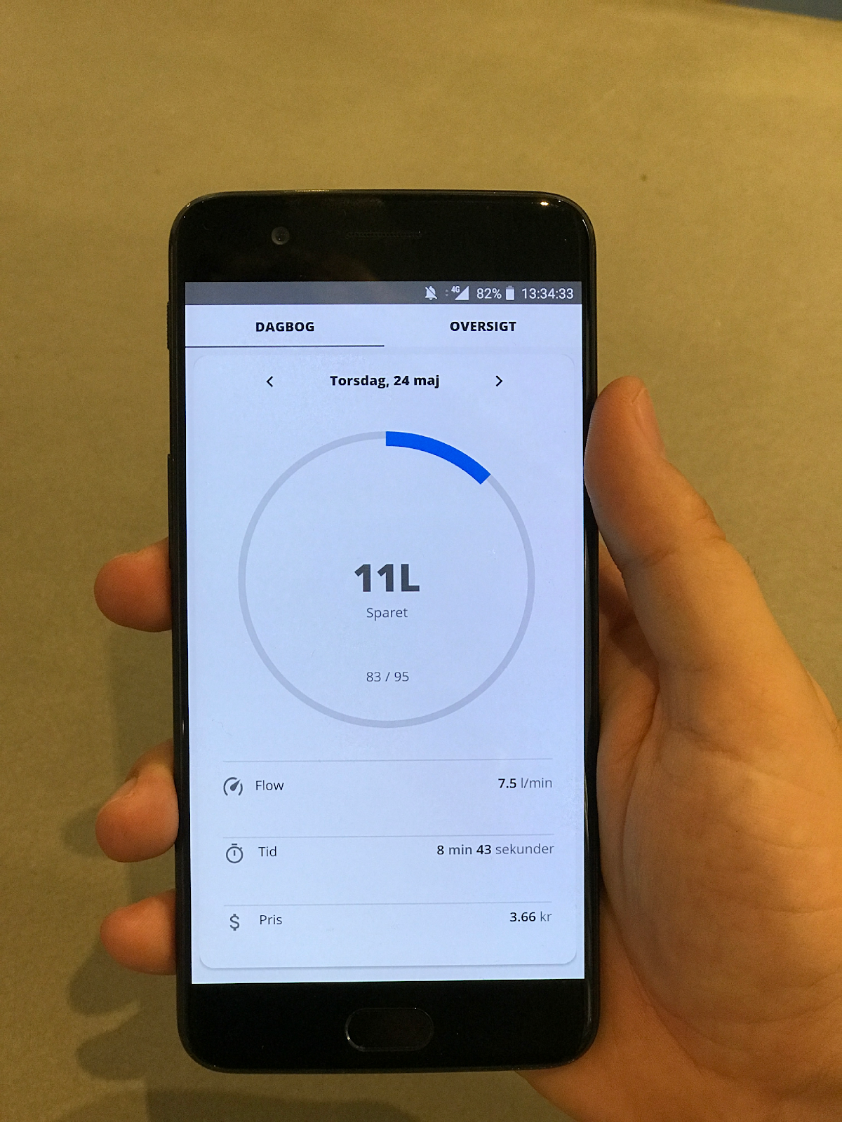 In an average danish household, 36% of the water consumption comes from showers and personal hygiene. This creates a significant potential in saving water in the shower. Changing habits is however difficult without assistance. The motivation behind the project has due to this been to raise awareness and visualize water consumption while making it easier to understand and reflect upon.